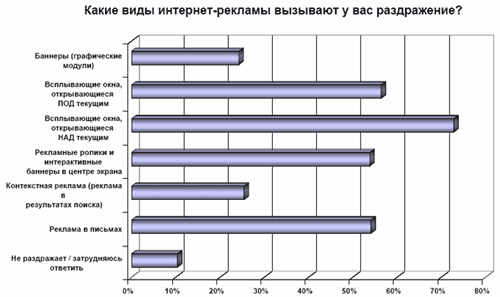 По последним исследованиям МАСМИ (апрель 2005 г.) он-лайн аудитории Рунета, более-менее лояльно относится к привычным баннерам (графическим модулям) и контекстной рекламе.
